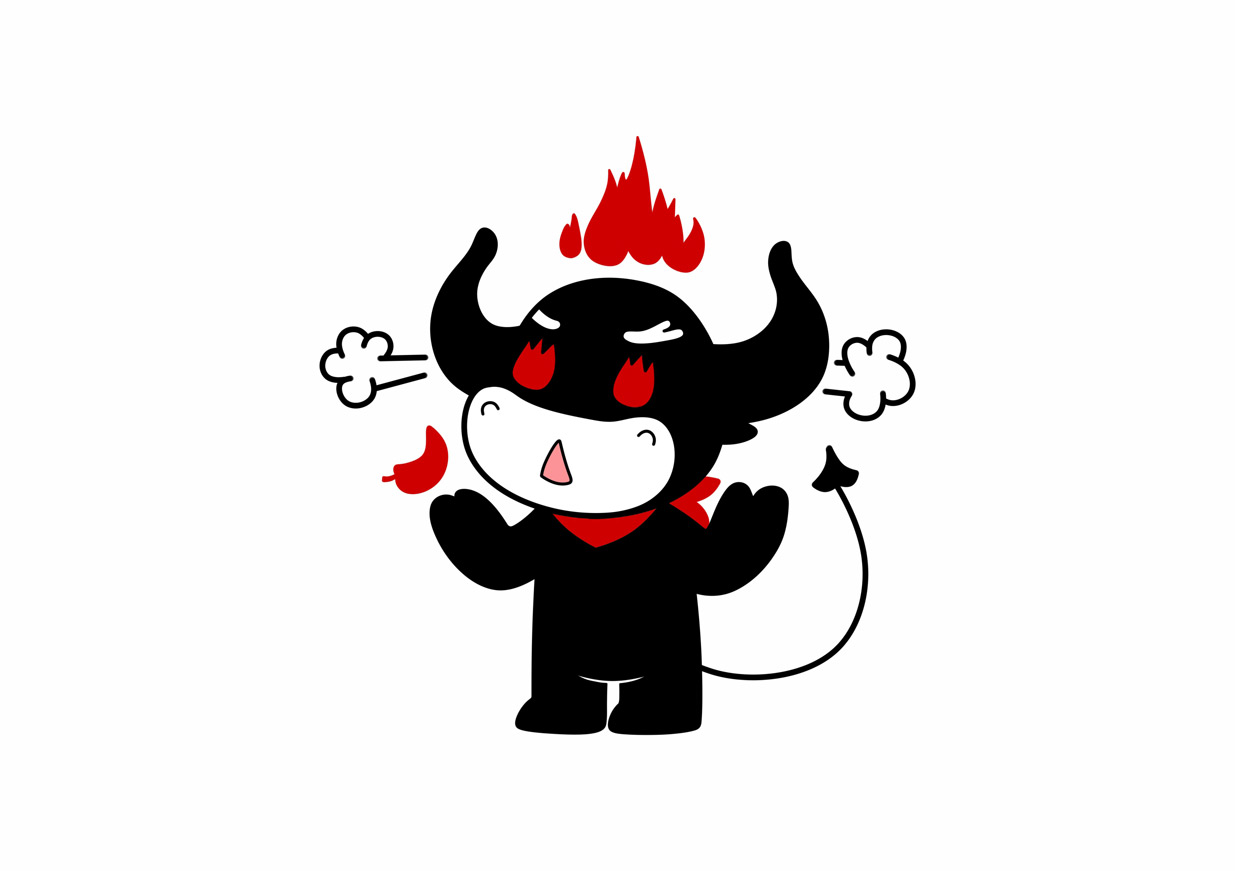Introduction:火山小牛魔是一個(gè)牛肉干的品牌,名稱直觀來看,腦海里第一出現(xiàn)的應(yīng)該是小小Q版牛魔王的造型。有點(diǎn)呆/有點(diǎn)搞怪的性格,考慮到品牌的傳播性,知物設(shè)計(jì)在造型上盡可能簡約,色彩醒目,更加有利于傳播和記憶。