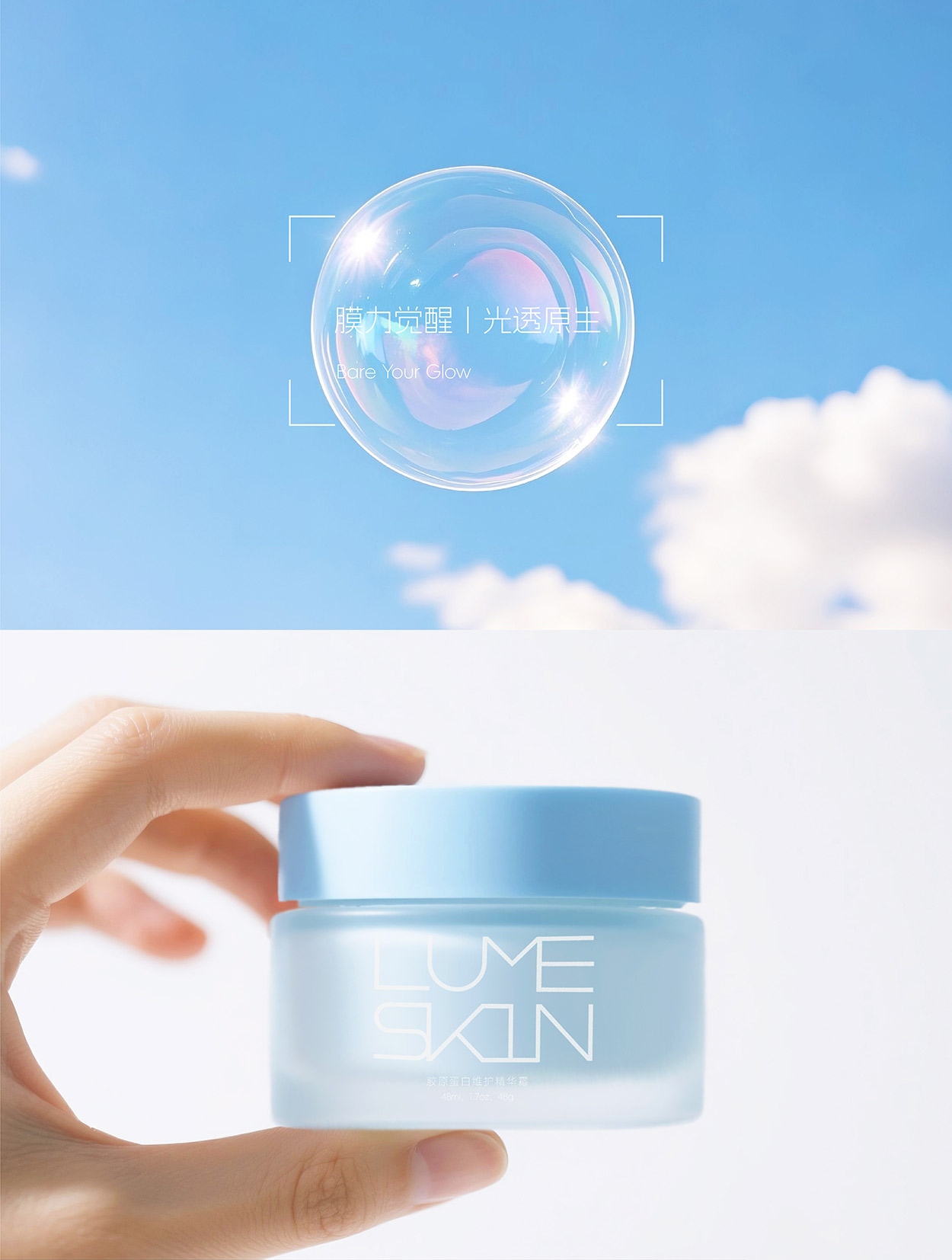 “LUME”源于拉丁文“Lumen”,意為“光”。品牌名直指核心——光感肌膚。· 膜力覺醒: 強(qiáng)調(diào)產(chǎn)品中“膜”的科學(xué)性與卓越功效(如精華膜、保護(hù)膜),能激活肌膚潛能,是一場技術(shù)的“覺醒”。