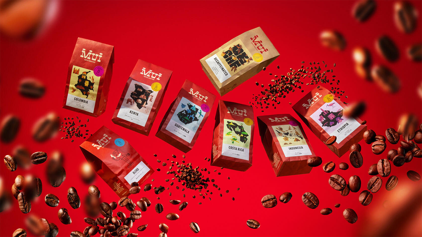 MUI的新外觀以醒目的紅色為主色調(diào),每個(gè)咖啡品種的包裝上都有定制的插圖,凸顯其原產(chǎn)地特色。這種設(shè)計(jì)不僅體現(xiàn)了意大利懷舊風(fēng)格,也展現(xiàn)了日本對(duì)古怪人物的熱愛,使得MUI的品牌形象更加生動(dòng)和具有辨識(shí)度。