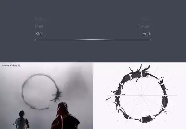 可以有梯度的表達(dá)情感、可變性和流動(dòng)性。與一條線和三角形矩形不同,圓形沒(méi)表示時(shí)間,順序,差距。2016年的電影《降臨》內(nèi)也出現(xiàn)這樣的概念。